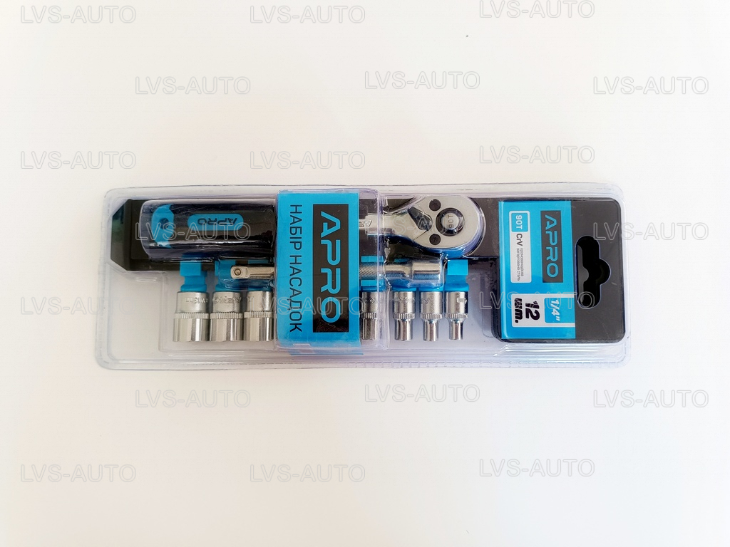 Купити набір інструментів та насадок торцевих з тріскачкою стандарт CrV 1/4" (12 шт.) (251413) 90Т APRO можна в нашому інтернет-магазині lvs-market.com.ua , з можливістю доставки по всій Україні.